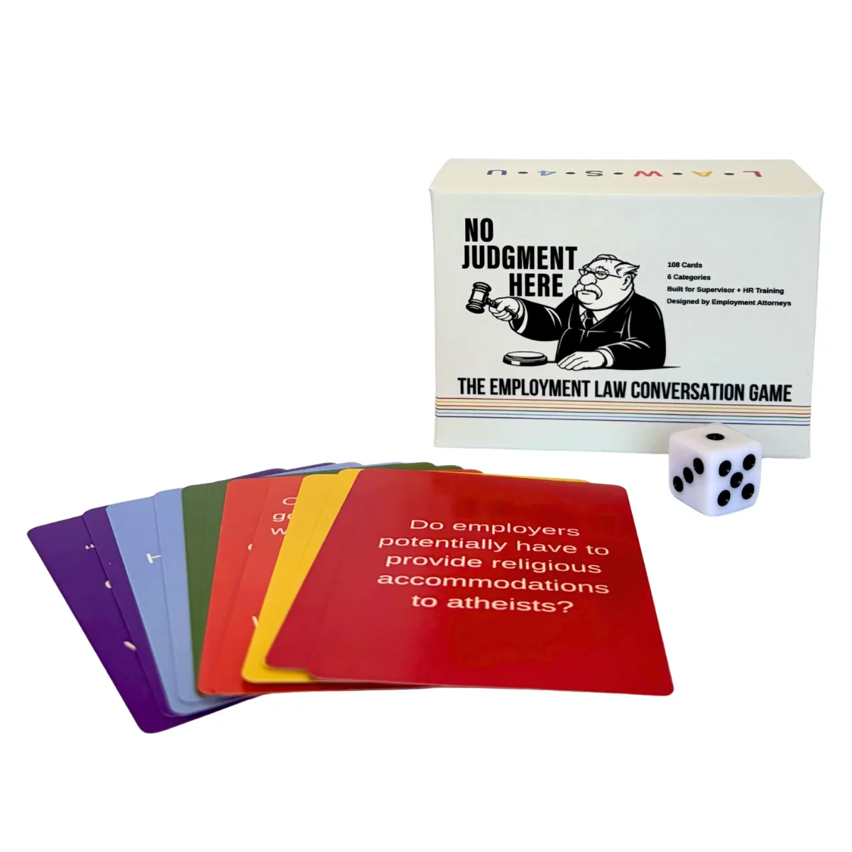 Participants roll, draw a card, and work through prompts designed to spark discussion about the kinds of issues leaders face every day. The format encourages useful conversation between supervisors, HR, and leadership about how situations should be handled before they turn into problems.